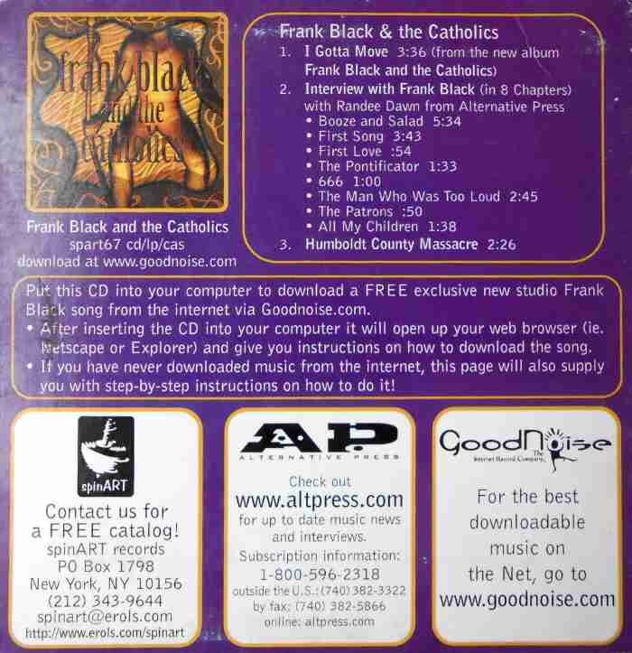 1. I Gotta Move 3:36 2. Interview With Franck Black (In 8 Chapters) 3. Humboldt County Massacre 2:26