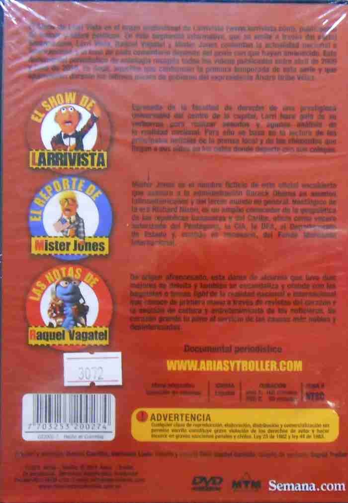 El Show de Larri Vista es el brazo audiovisual de Larrivista, publicación de humor y sátira políticos. En este segmento informativo, que se emite a través del portal Semana.com, Larri Vista, Raquel Vagatel y Mister Jones comentan la actualidad nacional e internacional, y el tono de cada comentario depende del genio con que hayan amanecido. Este documental periodístico de antología recopila todos los videos publicados entre abril de 2009 y julio de 2010.