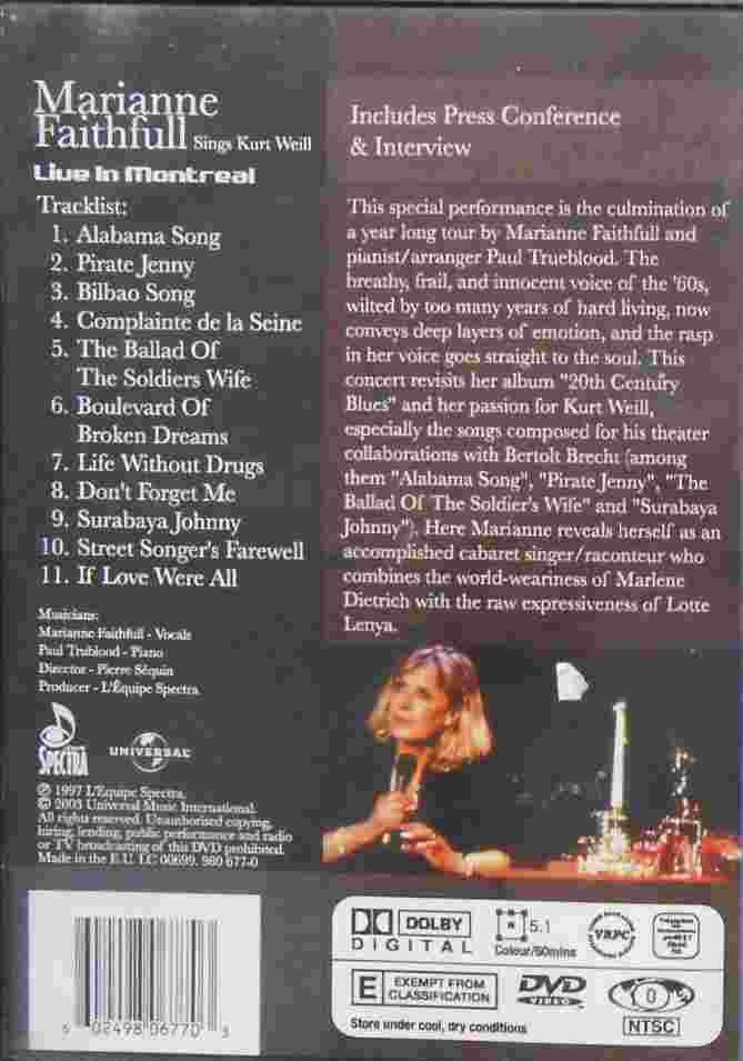 Sings Kurt Weill Live Montreal